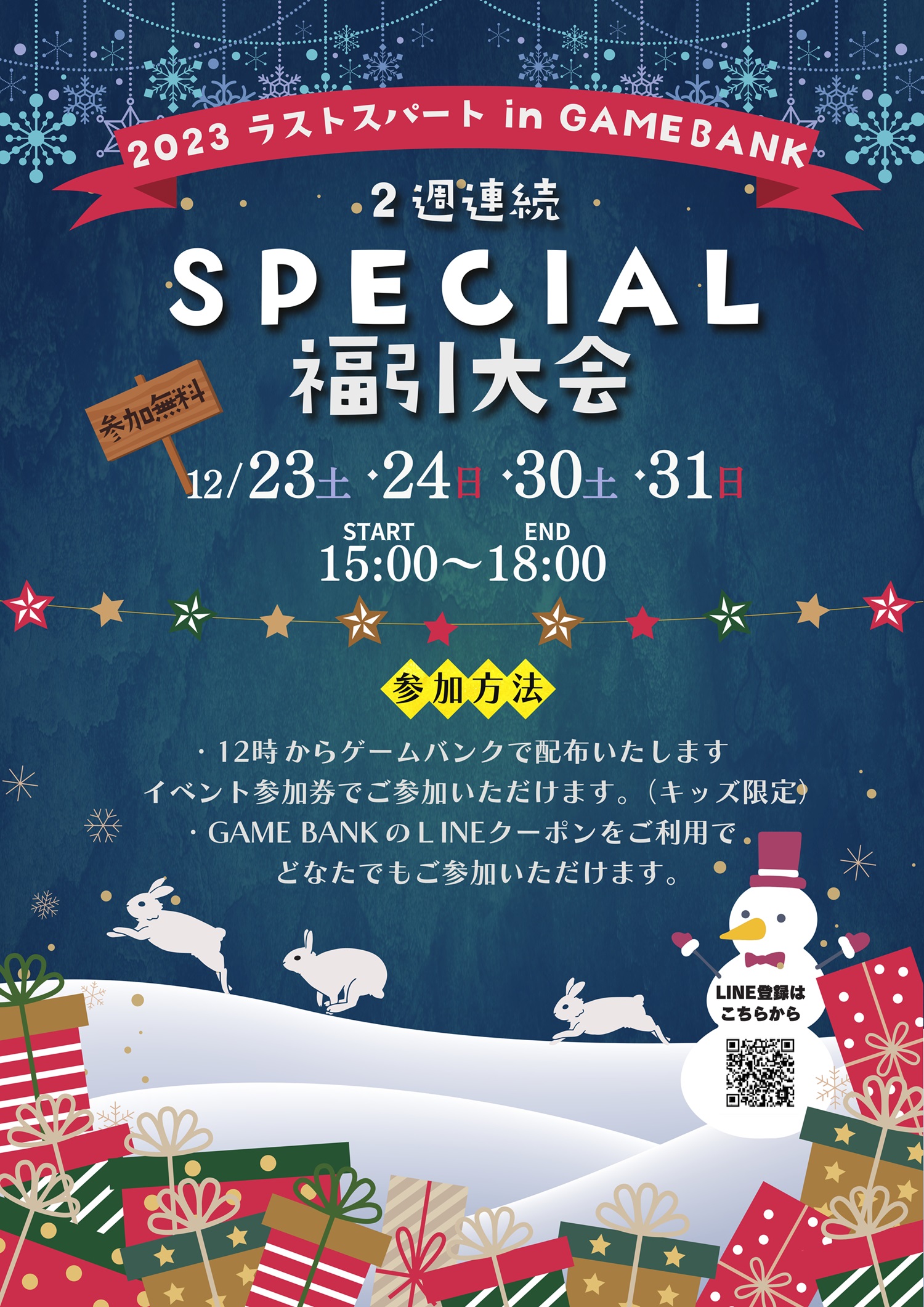 【イベント情報】 12月23日(土)、24日(日)、30日(土)、31日(日)「2023 ラストスパート in GAMEBANK SPECIAL 福引大会」を開催いたします。